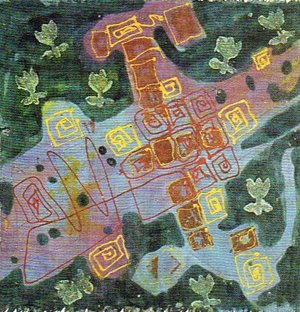 - Kinderarbeit, O.T.,1994, Textilmalerei, 27x27 cm