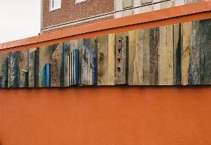 2006, Detail, Eiche, 70 x 550 x 12 cm Standort: Schwerin-Neu Zippendorf, Hamburger Allee 1, Wärmestation der Stadtwerke Schwerin.