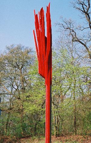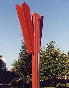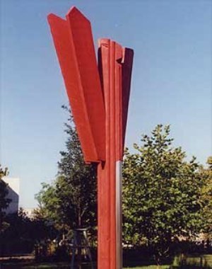 1998, Buche gefärbt, Edelstahl, 400 x 100 x 100 cm Standort: Greifswald-Schönwalde, Grünzug Anklamer Straße