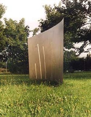 1998, Edelstahl, 175 x 300 x 50 cm Standort: Greifswald-Schönwalde, Grünzug Anklamer Straße.
