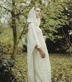 - Weißer plissierter Mantel mit Kapuze, 2000, Wollplissee