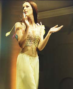 Die zauberhafte Umkleidung des Körpers ist eine fast logische Folge dieser intensiven Arbeit, ob mit schmetterlingszarten Stoffen, farbigen Plissees oder räumlicher feiner Flechtkunst.