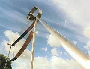 - kinetisches Objekt, Edelstahl, bewegliche Schleife auf Drahtseilkostruktion, Höhe 600 cm, 1997, Campus der Universität Bremen