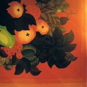 „Früchtestillleben„ Gobelin, 185 X 185 cm, Wolle selbst gefärbt auf Flachs kette,