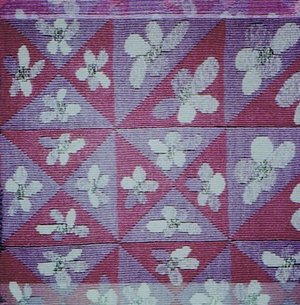 „Violette Blüten“ Gobelin,120 X 120 cm, Wolle selbst gefärbt, handgesponnener Flachs,