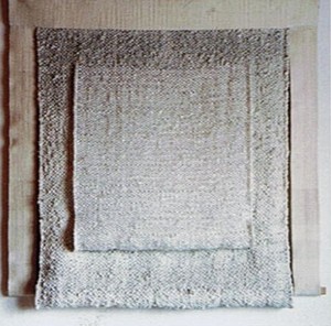 „Weißes Quadrat„ Wandteppich, 155 X 155 cm, Nessel und Seide gerissen, Zeltschur und Flachzwirn,