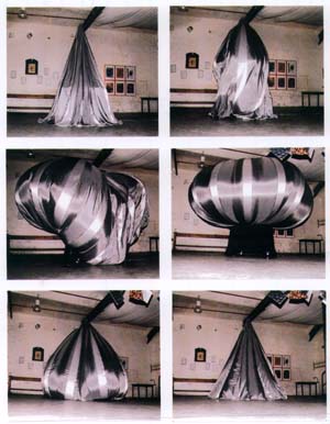 2000 Ausstellung BEUTEL in Schwerin mit Achim Westphal und Helko Reschitzki im SPEICHER Schwerin, große kinetische Skulptur "Euphorie"