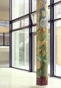 Kunst am Bau: Mosaikfußboden, Wandbild und Säulengestaltung,