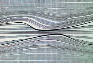 - Fließend, 2006, Reliefgewebe, Wellpappe, Baumwolle, 70 x 120 cm
