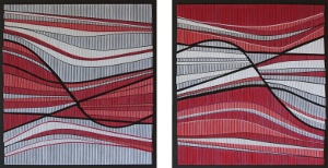 - Im Wandel, 2007, Reliefgewebe, Wellpappe, Baumwolle, je 58,5 x 52,5 cm